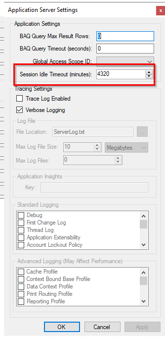 Thoughts @Rich or @bconner on this enforcement? Why would Epicor allow only a maximum of 4320 minutes. We have to make use of SQL Triggers to modify SessionState to support Classic Clients still (MES etc).