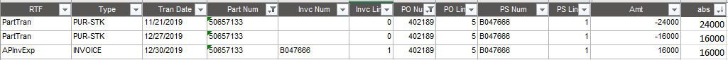 I’ve located an invoiced receipt in our system that had 2 separate transactions going into the AP Clearing account but only 1 transaction coming out of AP Clearing when the receipt was invoiced. I’m having trouble figuring out why this occurred. Below are all the transactions in the AP Clearing account related to the receipt:
