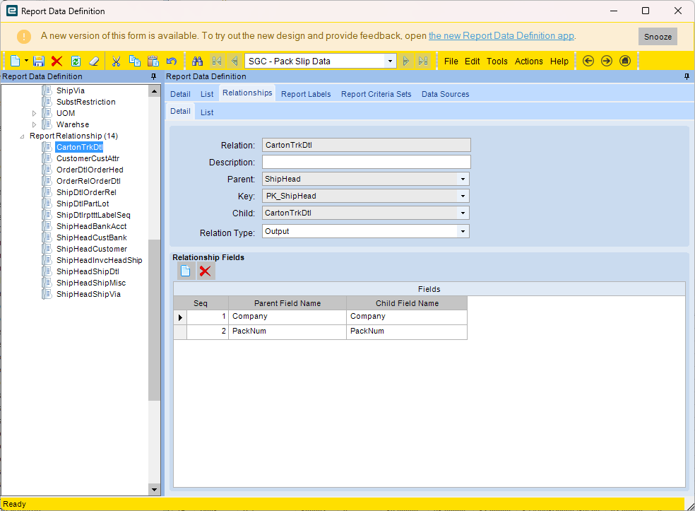 Add a Relationship Between CartonTrkDtl and ShipHead (set as output)