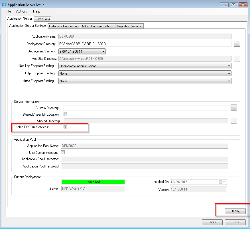 Then after we set our bindings we configured SSL Settings on the ERP Application Server per Epicor Help - Rest Implementation - Activate and Configure REST