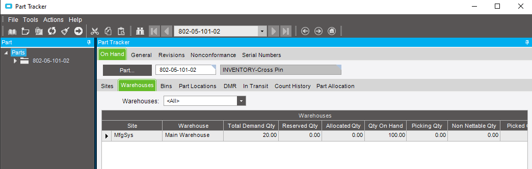 We are on 10.2.500.11. Normally we are a Make to Order shop but recently decided to investigate making some components (screws, dowel pins etc.) to stock and issuing to jobs as needed. The part is set up as a stock part and is quantity bearing. Track lots is checked and the Mfg Lot is tracked.