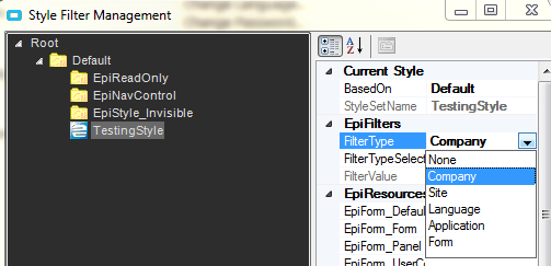 Jose - When I pick the FiterType = Company in the Style Filter Manager, There’s only one to choose from, which is the Company.Name field (we are single company/site), and in FilterValue, it shows Company.Company.
