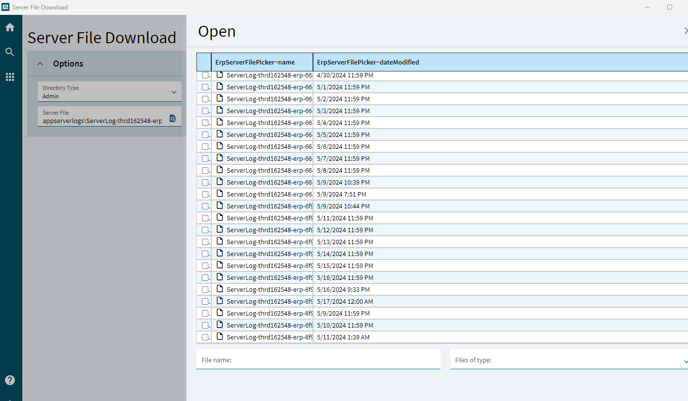 from Epicor navigate to System Management > Schedule Process > Server File Download: On the Directory Type, select Company and click Select File, this will take you to the server where log files are stored. Select the Log folder and you should be able to find the Log there: