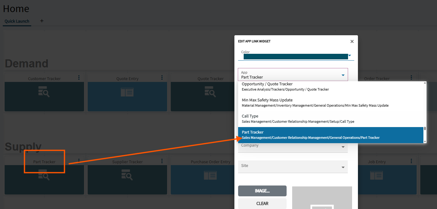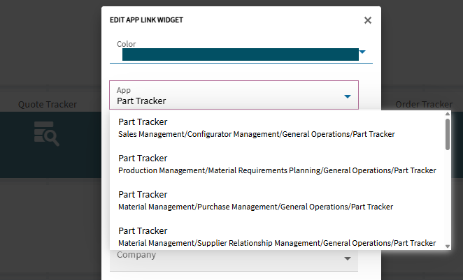 That means, even though there are a dozen other Part Tracker menus in the system… only people who have access to Sales Management, CRM, General Operations menu folder can use that widget.