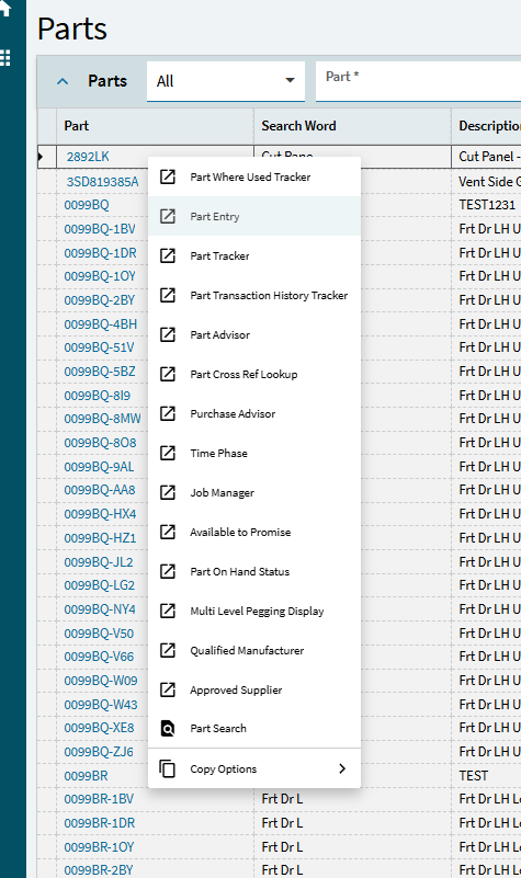 How do i stop users from being able to use the Part Entry on the left mouse click, I don’t know what Part Entry screen its going to. But I thought I had disabled that screen.