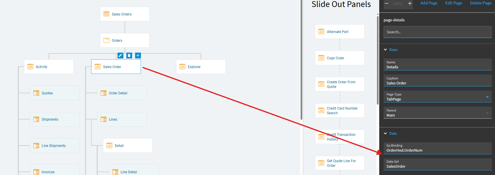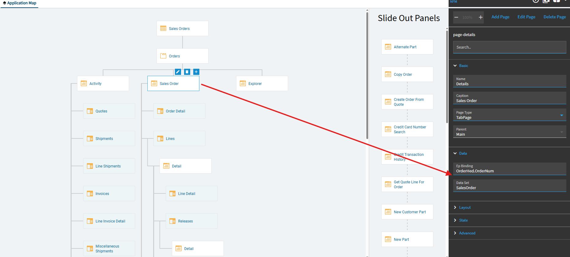 In App Studio… open your layer… click on the Sales Order page… in the properties, expand Data. Do you see any bindings there?