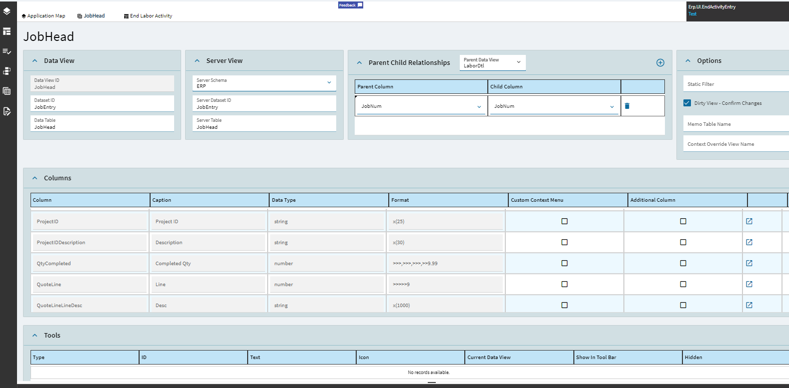 So, I’m wondering if that’s why you’re getting your error. Its looking for JobAsmbl.JobNum, but it doesn’t exist (even though there’s a dataview on End Activity in App Studio, but, again, not sure why at this point).