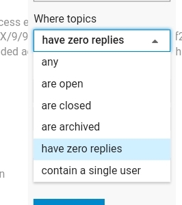When using advanced search, you can filter for topics that have no replies