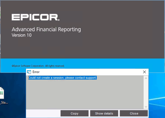 Does anyone know the following error message when we re-installed and open AFR report designer, error message showed “Could not create a session, please contact support.” We are on AFR 10.2.