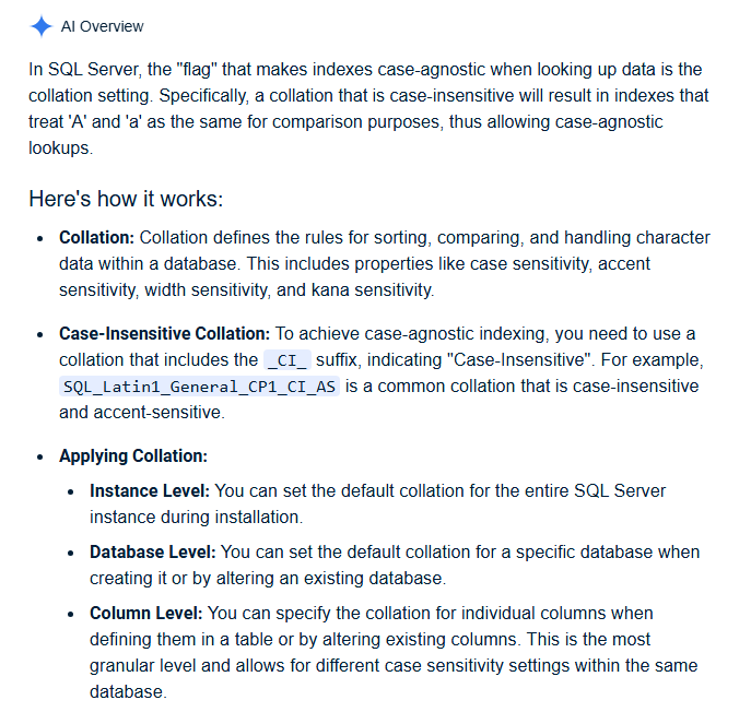 Case sensitivity is one part of SQL collation that’s going on under the collation umbrella that needs planning and consideration during the database design stage.