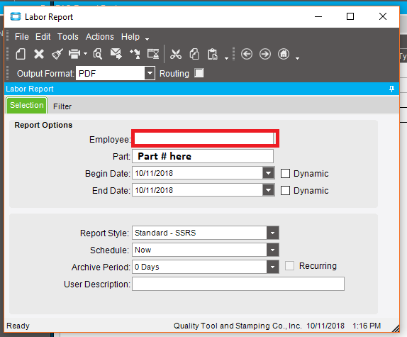 I have a BAQ Labor report that was originally created with option fields for part # and date range. It has been requested that an option field by added for employee number. I added it and it works great when an employee number is provided but we would like the flexibility to run the report both ways, with or without an employee option entered. The BAQ options field doesn’t appear to allow a null value. Am I mistaken?