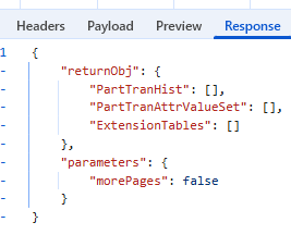 The method that gets results for “good” parts and not for these parenthetical ones is the BO.PartTranHis.BuildPartTranHistory which sends this where clause: