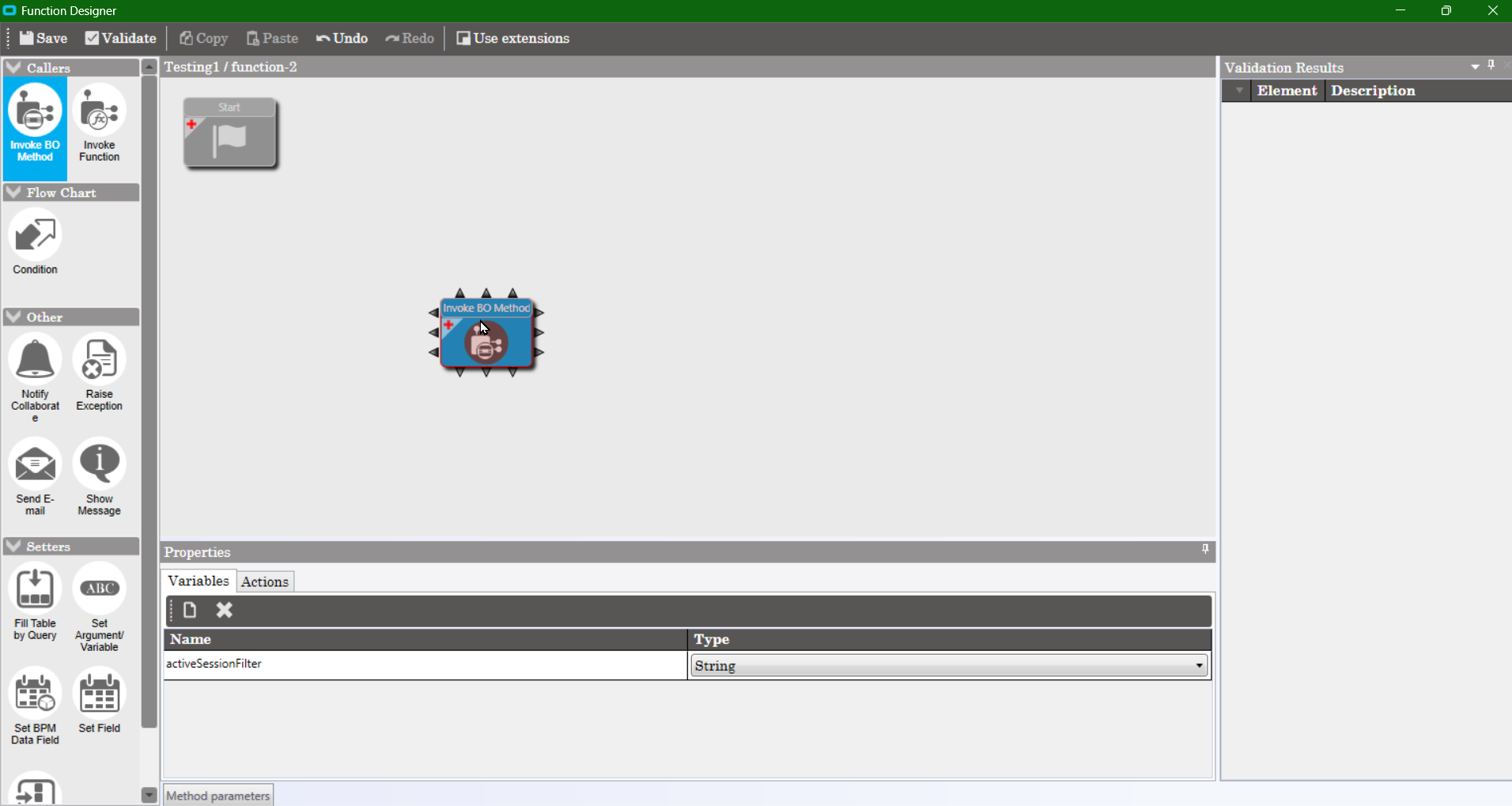 I’m using the Invoke BO Method widget and the input parameter is a variable (or expression, I suppose) of type <ActiveSessionFilter>