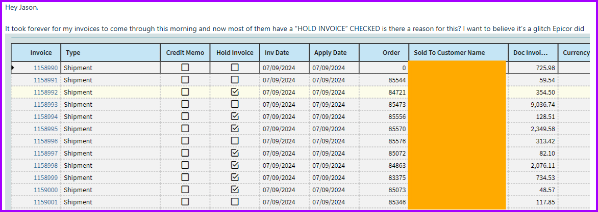 A few gotchas we ran into when testing in Pilot within an Avalara Sandbox prior to going live - the part has to be taxable and the state per the Bill-to address has to be loaded in Avalara. The sandbox wasn’t a full representation of Live and not all states were loaded. The Tax Interface connection setup can be tested in Company Config > Tax Interface.