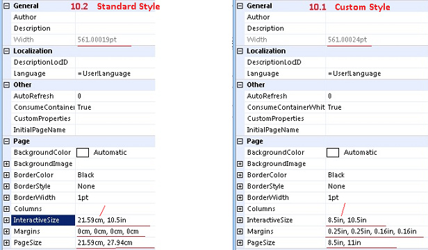 While for previous versions, AP Check report properties were english (in) and margins were specified (R/L ,25 in, T/B .16 in).