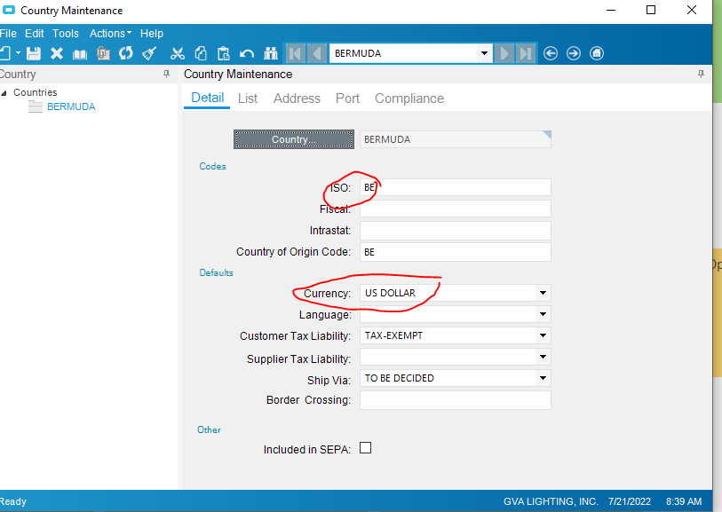 The ISO code is related with your country setup and the associated currency with that country.