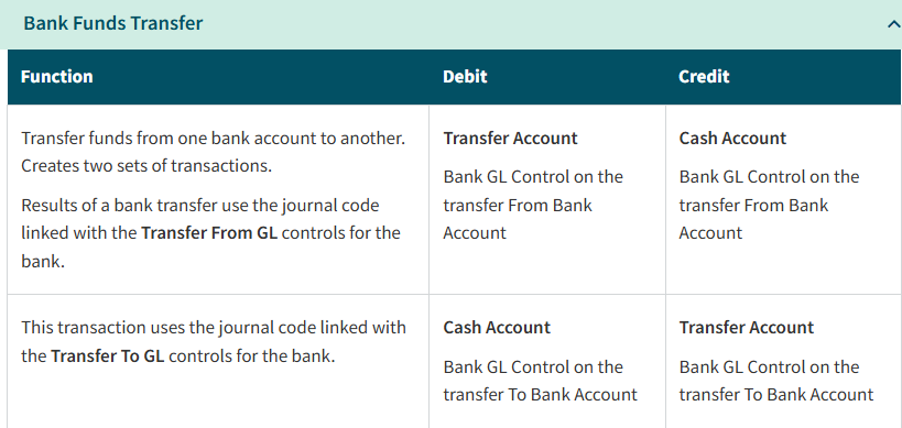 Yes, I was going to set up my credit card account as a liability but make the standard balance a debit so that it would mimic a “cash” account. When that bank is selected for the payment, the credit will make the balance negative. The bank transfer transaction will add the money back to the cc account and bring the value to 0. I was just thinking that I would need something to enter in the transfer account of the GL control as that is included in both entries.