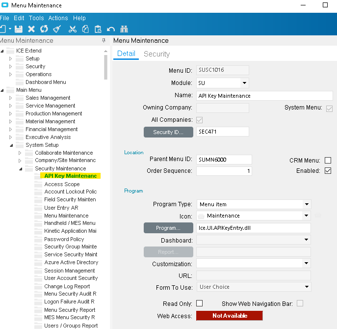 … but the module does not appear to exist when I browse the “Security Maintenance” menu:
