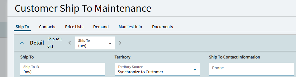 BUT… if you navigate to Customer Ship To from Order Entry… it is actually calling the slider panel “Customer Ship To Maintenance”.