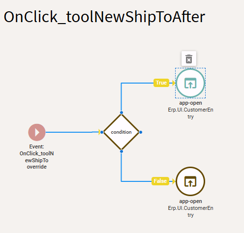 Notice there is a condition: {TransView.NewCustomerShipTo} === true