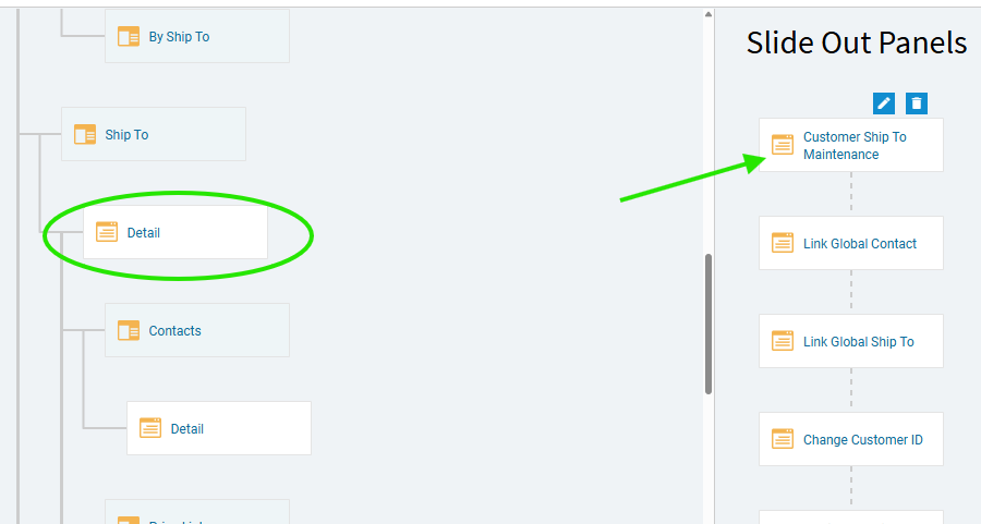 If you look at Customer Entry, in App Studio, there is the standard ShipTo > Detail page, which is what we see when we edit Ship-To records from within Customer Entry.