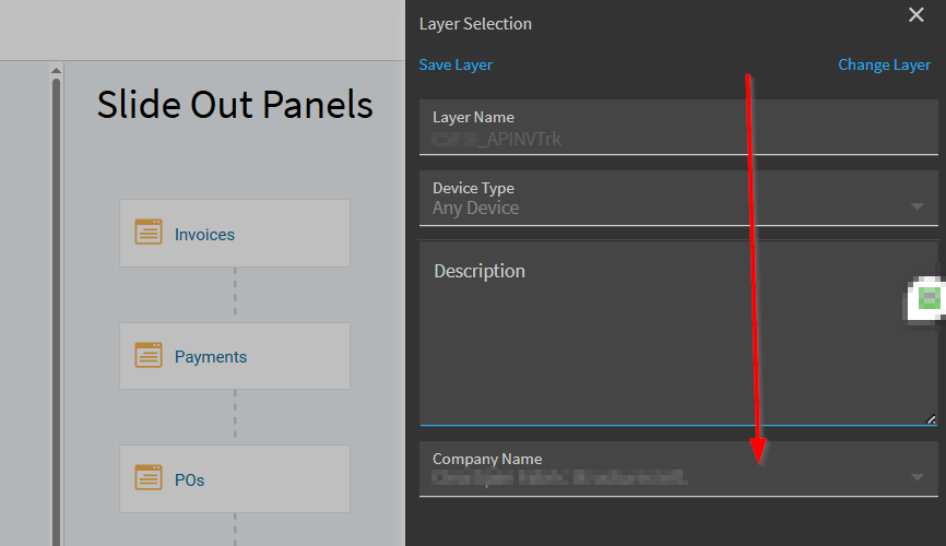 The Company Name dropdown box in Layer Selection is greyed out. App Studio’s grid seems to be read-only - I can’t remove the company name there either.