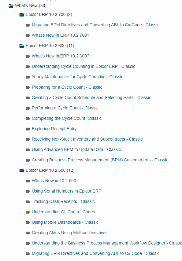 There are a LOT of 38+ Videos in Epicor Learning Center