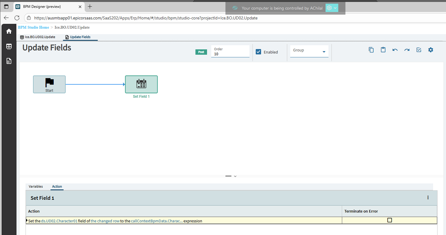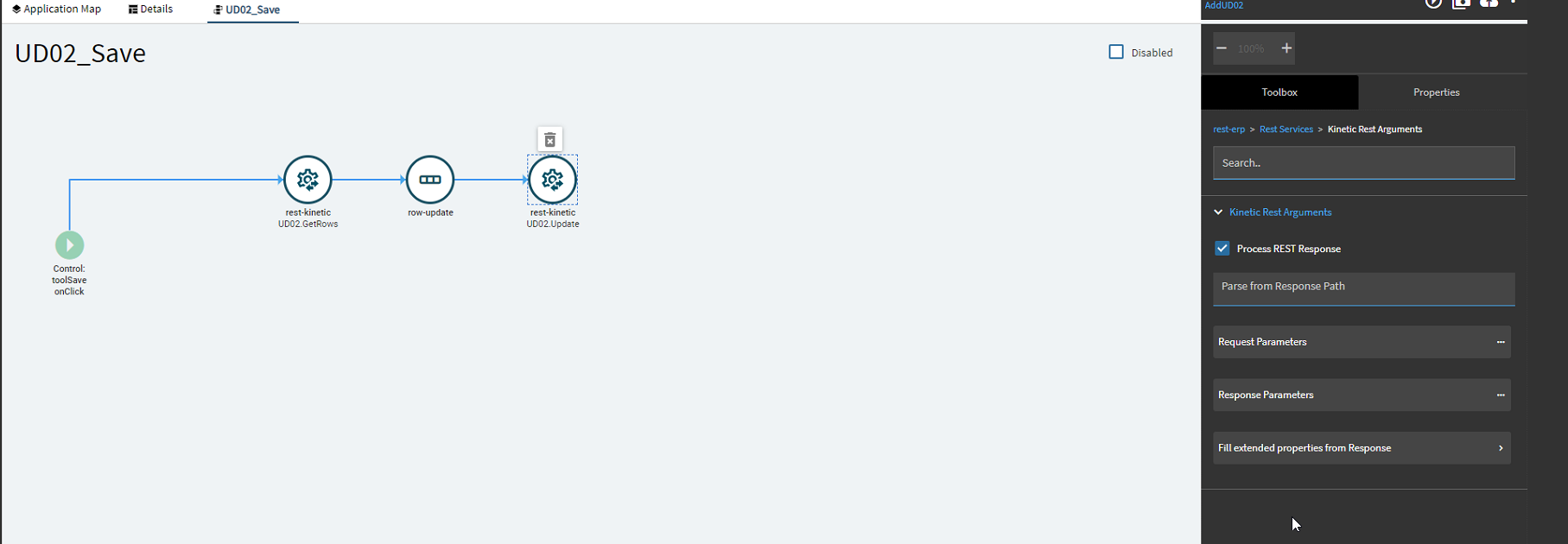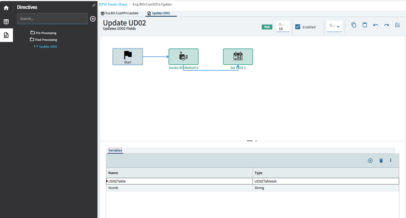 For the BO_UD08_GetByID event the rest services and parameters are copied from our dataview, so if you follow along just look at them and they will be filled already. This step was where I failed in my first attempt since in order to use rest service to update the UD08 field I needed to use GetbyID which I didn’t know how to setup, so this helped. I am not sure but maybe using a BAQ to get the data made it impossible to use the update rest service since the ds field was empty due to no get request, but I could be wrong on that so feel free to correct me.