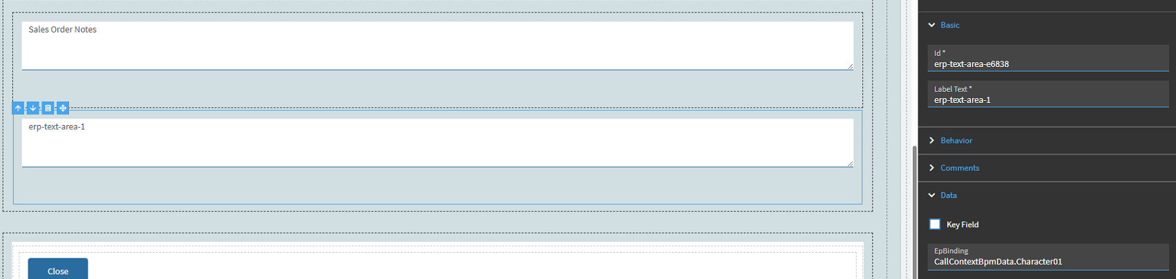 Here is the epbinding that references our data view, and I am using the usercodes type reusable combo. Use existing combos and their parameters as examples if you need to make a custom combo box that doesn’t have a reusable combo. In case you don’t know reusable combos are what select the options that are available on a drop down, my options are saved on user defined fields (UDcodes table not UD08) so I use this to get that data and when we run our update it will save the selection to UD08