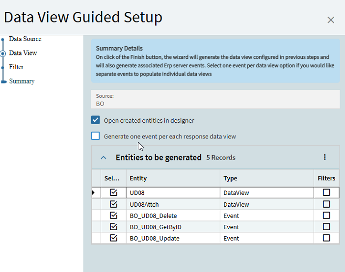 First things first, creating the data view using the ice.bo.UD08service call really helped, thanks Kevin. Here are the settings I selected when creating the Data view: