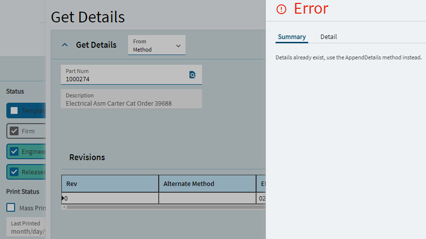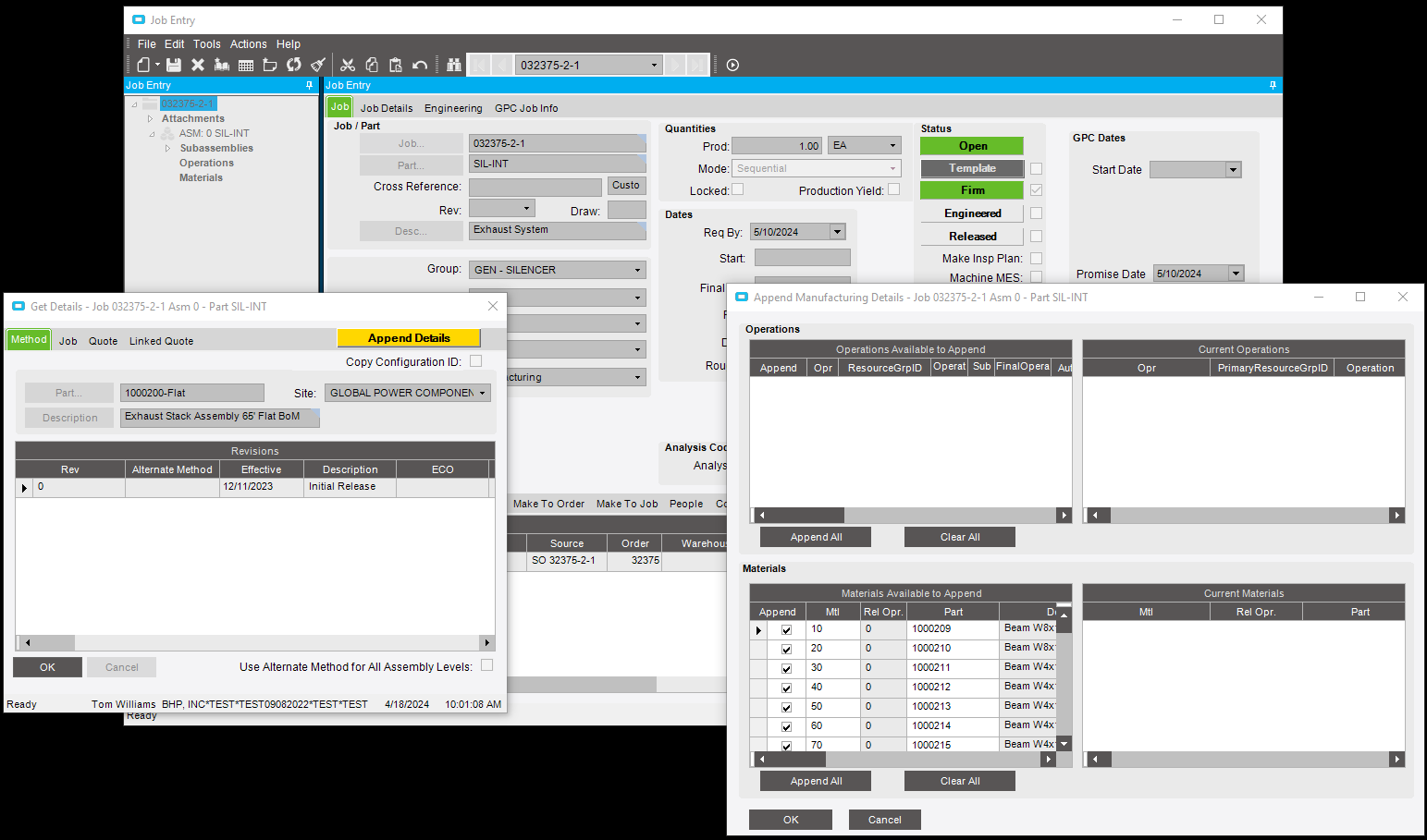 @Devin.Draeger We are still in the upgrade stage from E10 to 2023.2. In my testing, it appears that this bug only applies to jobs carried over from E10. When I created a new job in Kinetic, selected Get Details and entered the part number for a part with a method, Kinetic immediately populated the job from the MoM without taking me to the Append Details screen without the need to first add an operation. Have you tried it on a new job? This may have some bearing on your case.