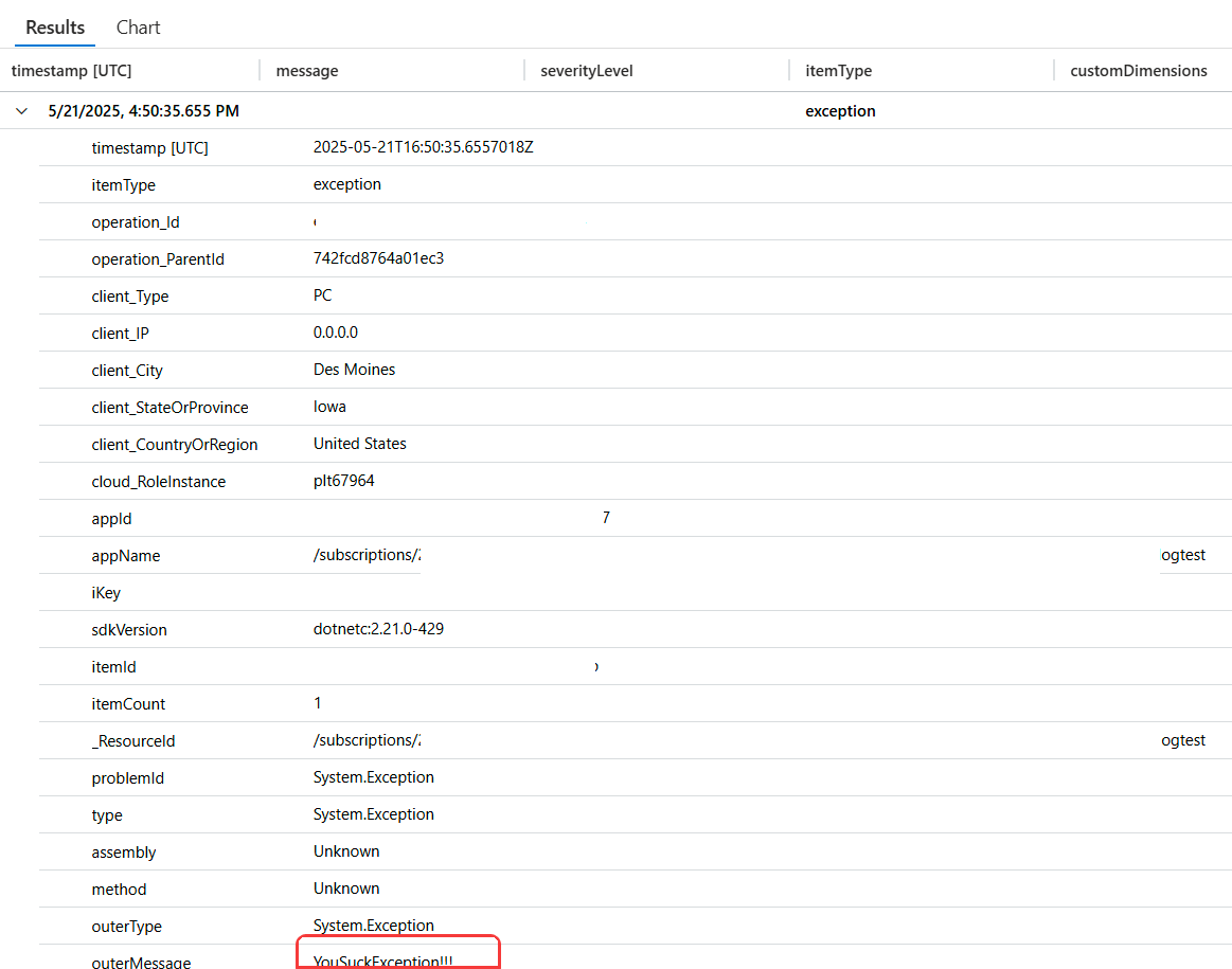 telemetryClient.TrackException(new Exception("YouSuckException!!!"));