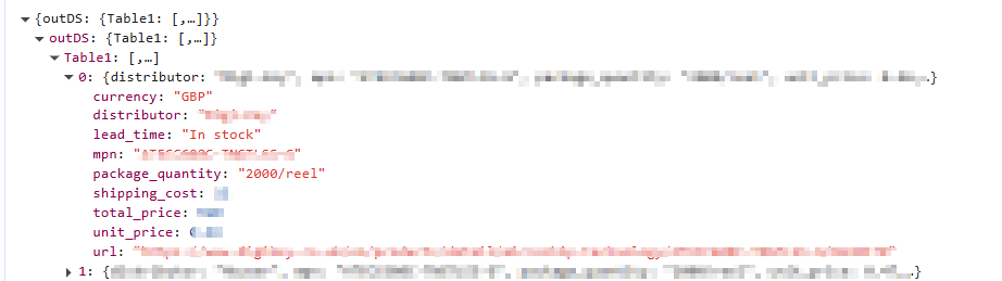 I am calling a function from an Epicor function, that returns the following data as a system.DataSet parameter.