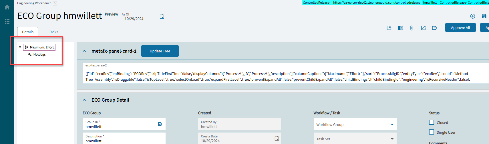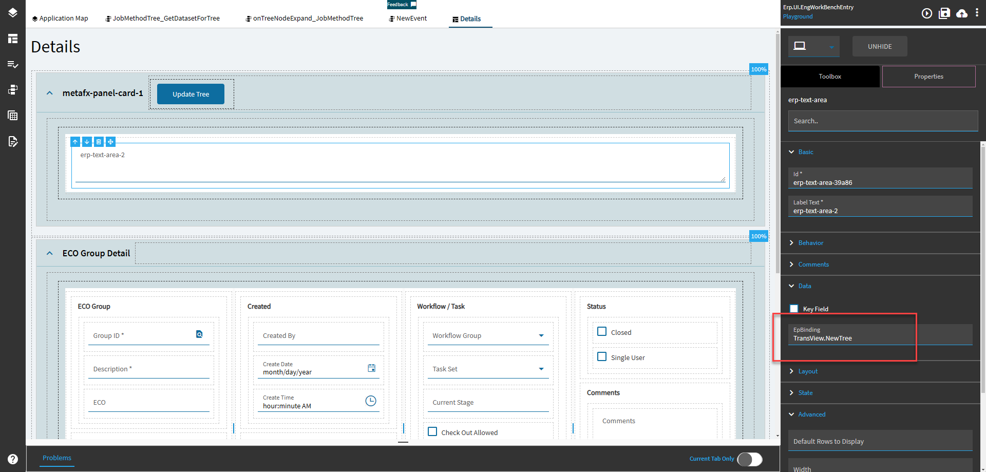 Knowing that, I made a button that called the datatree-bindings-set and a text-area control bound to TransView.NewTree.
