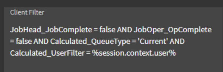 I would do it on the BAQ but in this dashboard we have 1 BAQ that we are filtering status & ownership across multiple cards, I really want to keep it to just one BAQ… and something like this should be dobable.