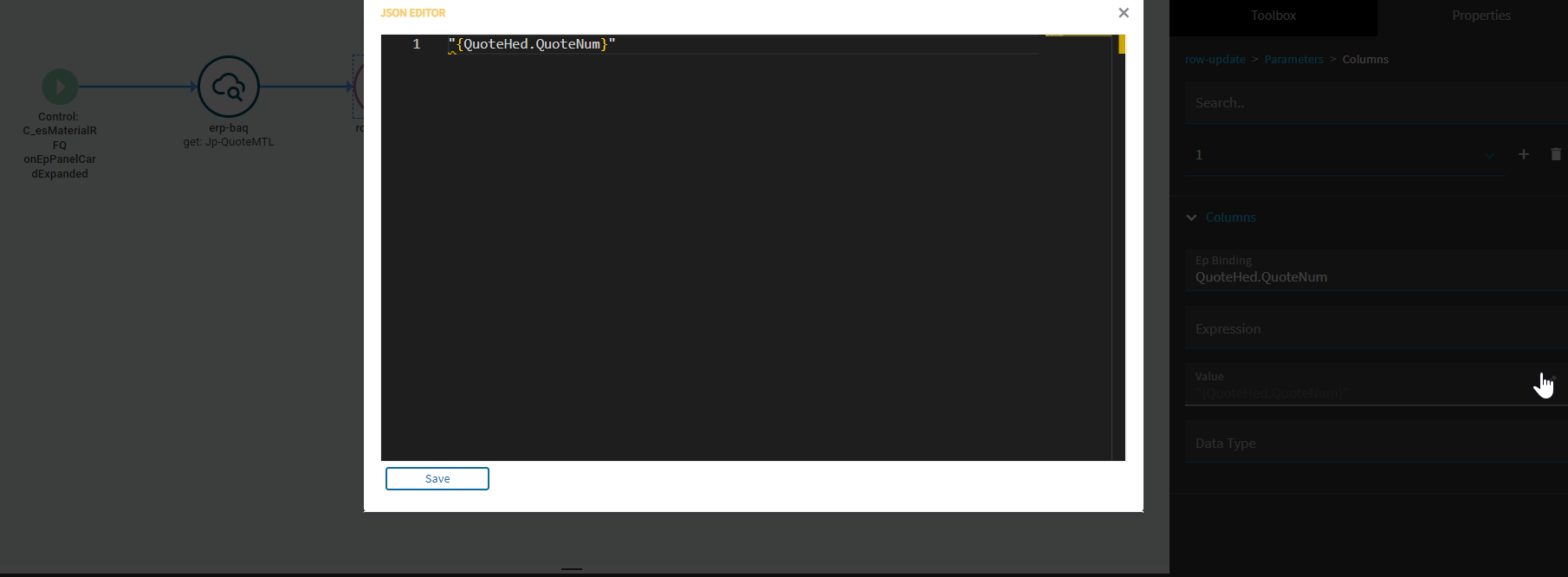 Novice application studio user here. I’m trying to follow this and add a similar panel card/event to call a BAQ. I cannot seem to call the BAQ silently or to pass BAQ to the panel card, instead a popup keeps coming up when I click on a quote. Trying to get the BAQ to populate when I expand the panel card. The BAQ has a calculated fields, not sure if that matters. The panel card doesn’t have any components, do I need to start there. Or do I have the wrong set up for EpBinding? Here’s what I have, any help would be appreciated.