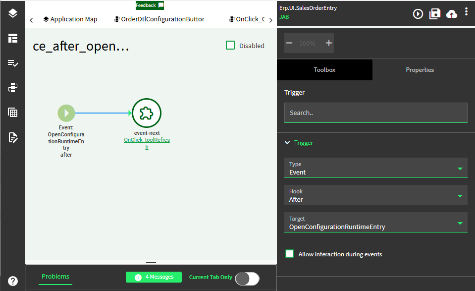 After the CFG launches, and the user hits save, it updates some OrderDtl values in the database, but doesn’t refresh the window/grid. So the button will still say “Configure” or “Configuration” and not switch based on its state.