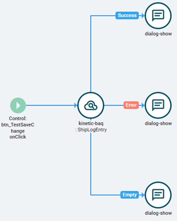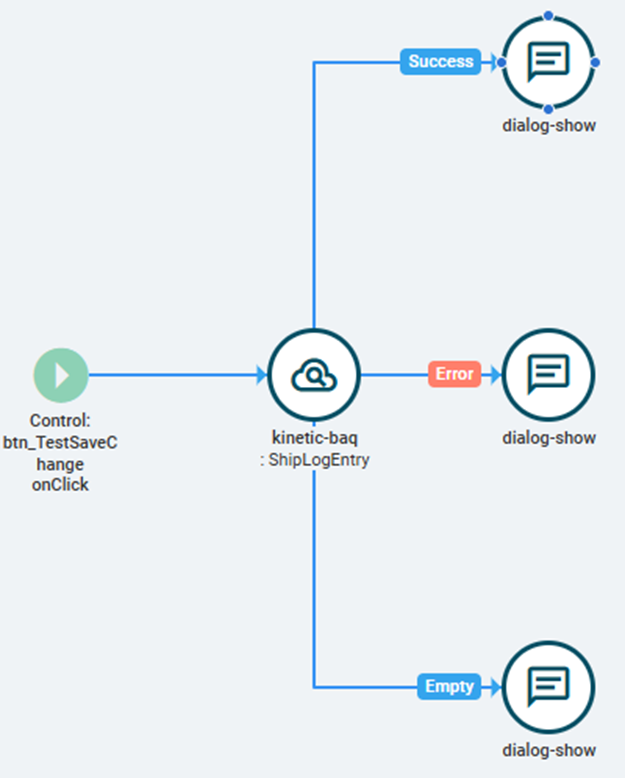 After the user fills out some fields, the user hits a Save Button. Upon click, the event below is triggered.