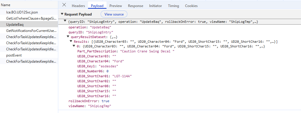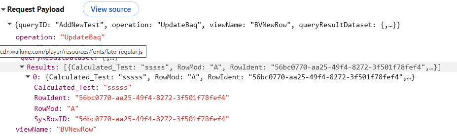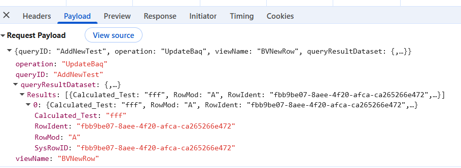 I want to load the single row from the temporary DataView into the kinetic-baq, and save it to the database. The rest call parameters are below.