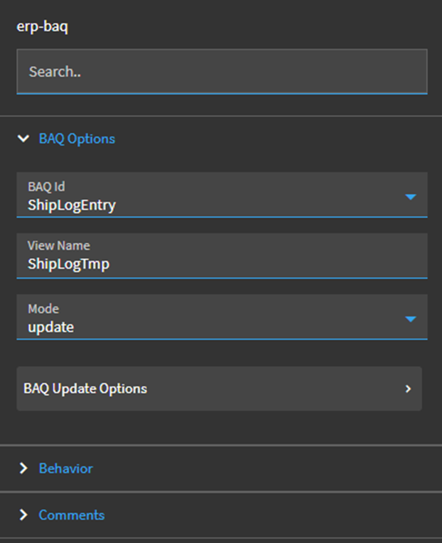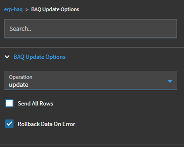 BAQ Options >> BAQ Update Options