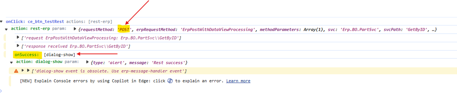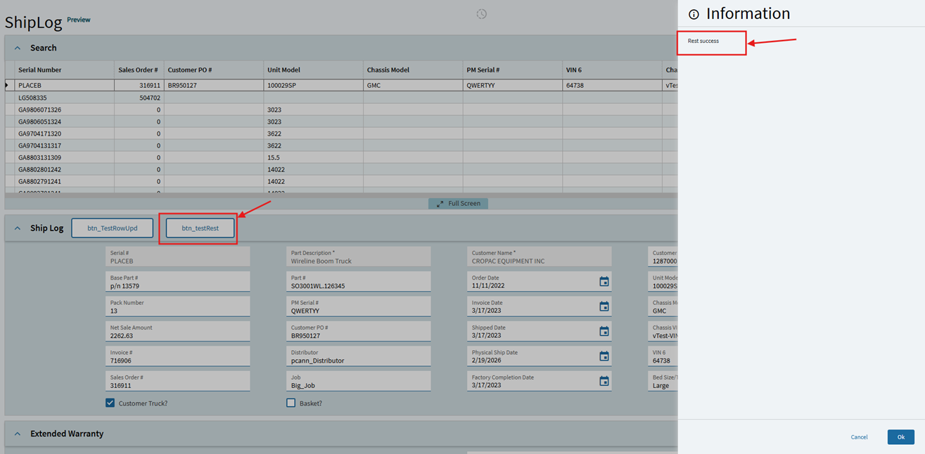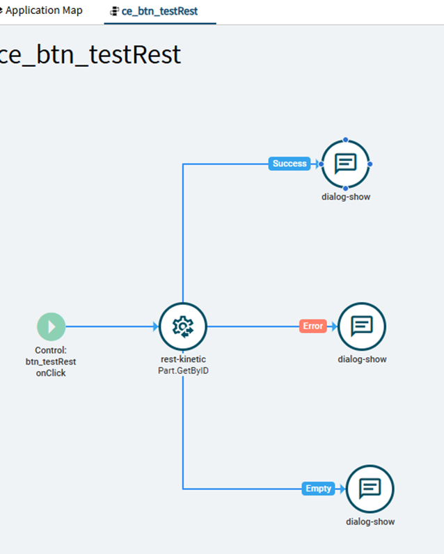 Upon triggering the event with the button click, the rest call goes down the Rest success path.