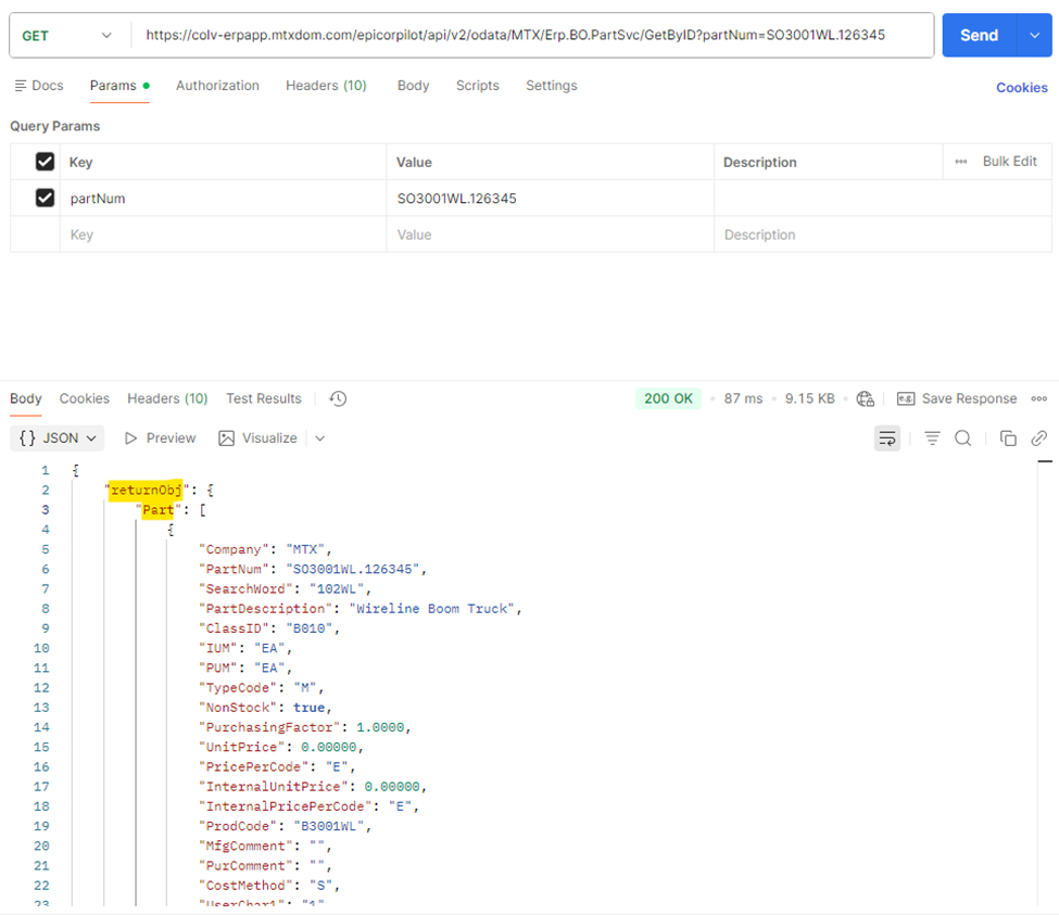 I am currently trying to perform a GetByID Rest call. I would like to pull the Part Description using the PartNum.