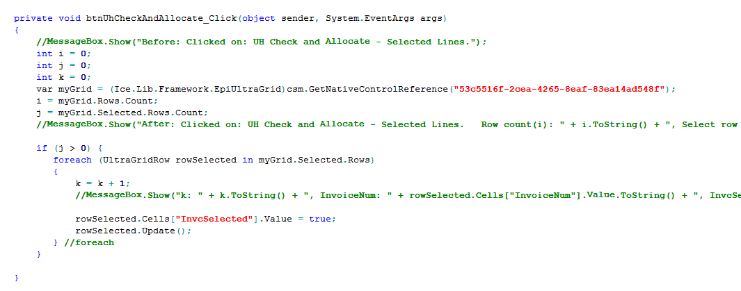 The below logic works for just one row, but not all of the highlighted rows. It works for the row selected, but not the other rows highlighted but not selected.