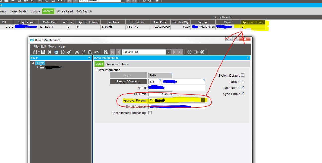I am connected to the buyer ID table. That approval person number in the screenshot does not match up to any person IDs.