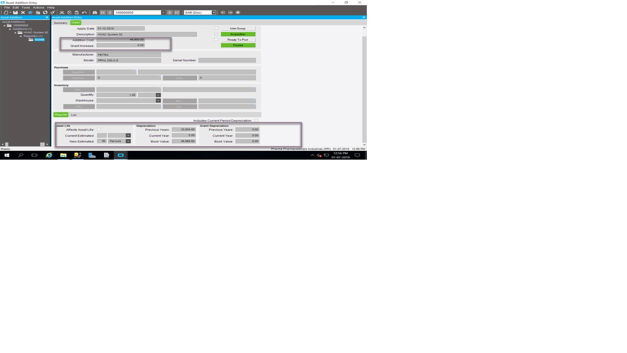 | 100000002 | HVAC System 02 | 15/11/2014 00:00 | 12/31/2018 00:00:00 | 1 | Assets | TRUE | SL | SD | 10.00 | 92 | Periods | 46,900.00 | 35,965.50 | 10,934.50 | TRUE | 31.12.2018 | TRUE | MISC | TRUE |