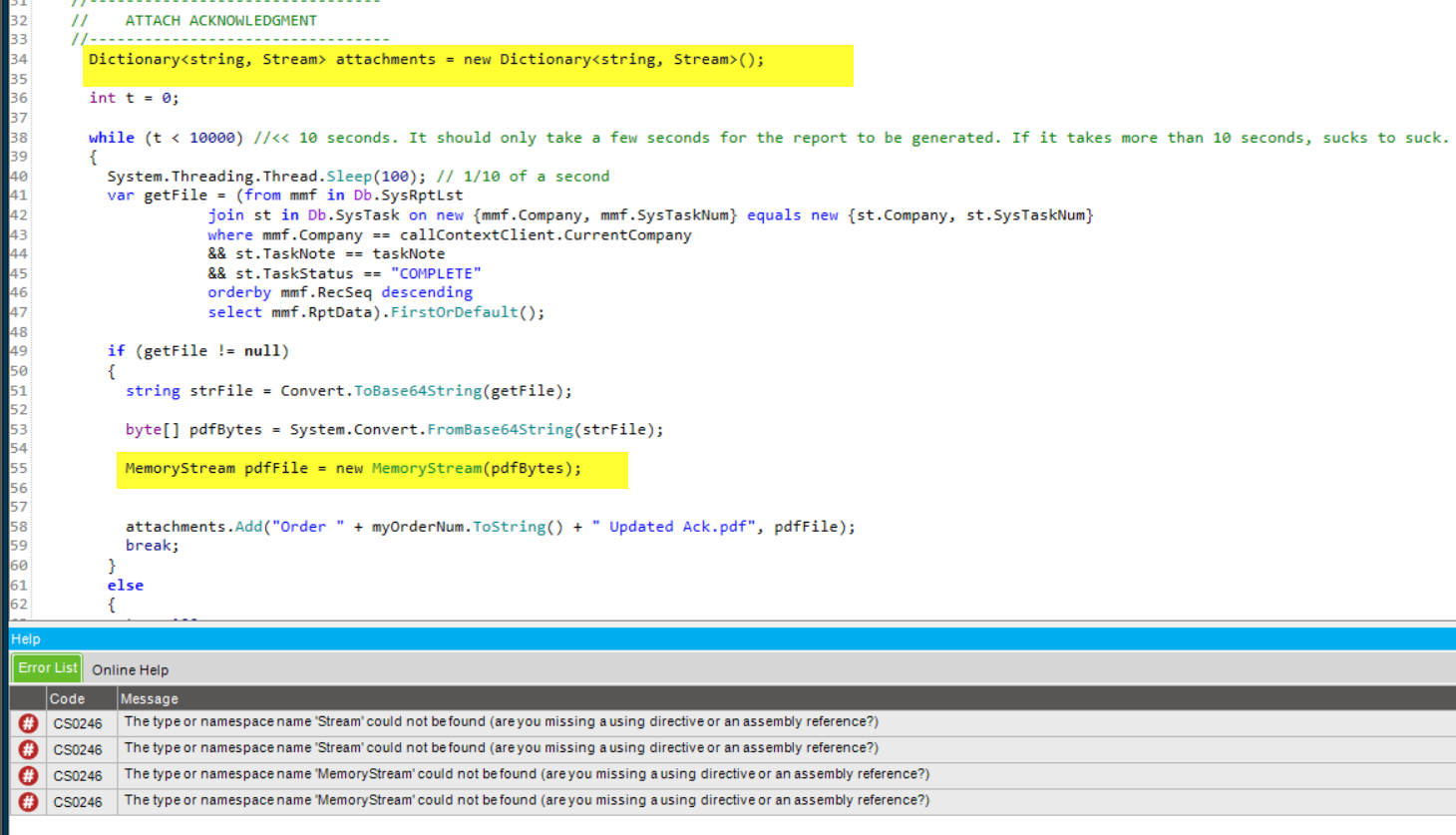 I really appreciate your support. I am trying to reuse the same code but facing this error. Is there any assembly missing?