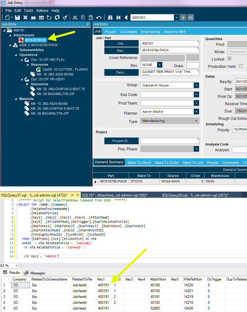 Yes we have attachments. The screenshot shows that there is one attachment but the database is showing that there are more somehow? These other attachments are for other jobs.
