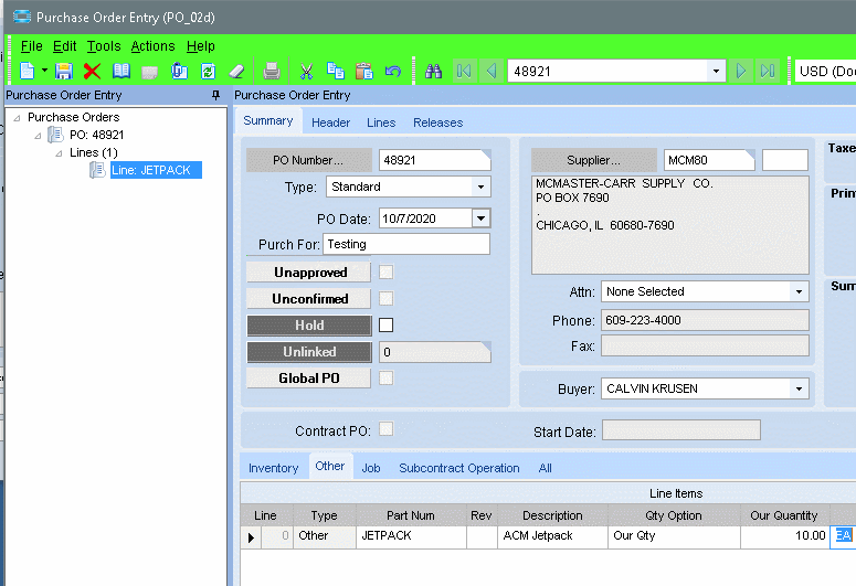 I looked through the BOs under PO and Iām not seeing any called setPORelShipToAddress. Whatās really odd is this to the job, not an order number or a drop ship, so Iām not sure why itās asking for a ship to when itās not required.
