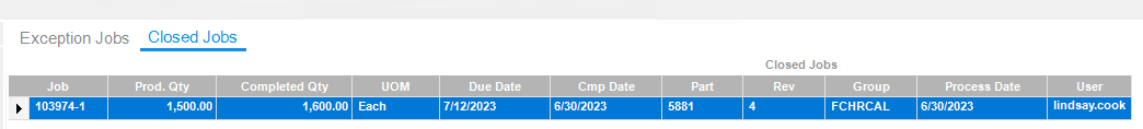 The job was for 1500 and 1600 is what was actually reported. It was a batch job so that is it’s own confusion but it was not expecting it to complete or close.