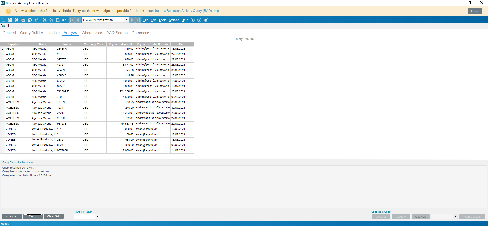 An alternate approach would be to have the addresses added to the payment details when they are created. Then they would be available to the BPM when they’re posted. This would also provide a record of who was emailed (not that I wouldn’t copy the user who posts the payments too)
